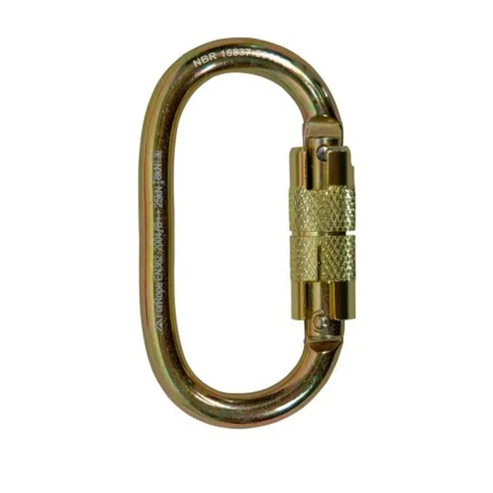 MOSQUETÃO AÇO OVAL TRIPLA TRAVA AUTO 25KN - (BICROMATIZADO) - CE/ EN E NBR - FOR ROPE ®